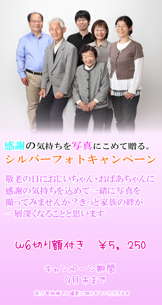 おじいちゃん・おばあちゃんが入った家族写真のキャンペーンです★