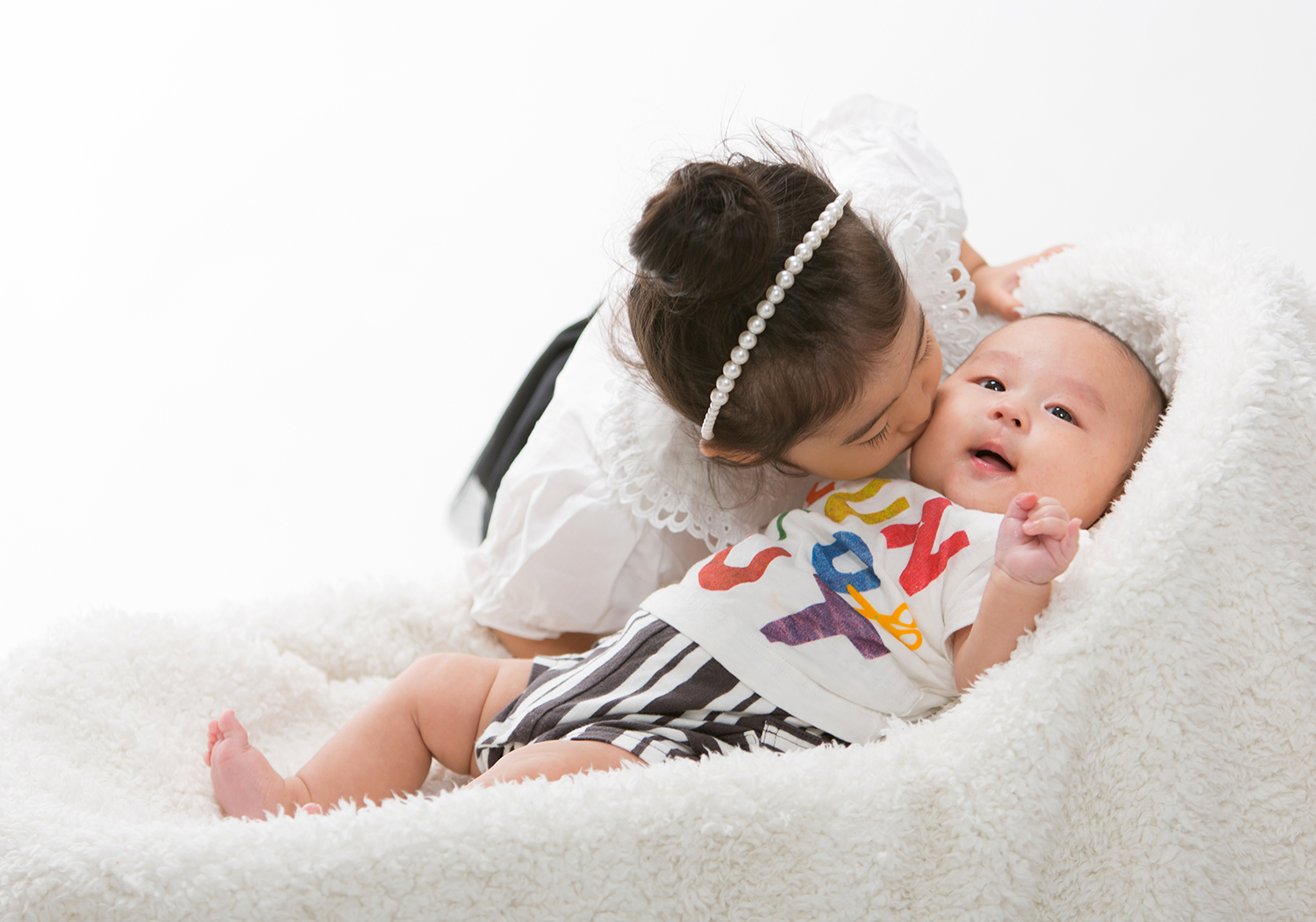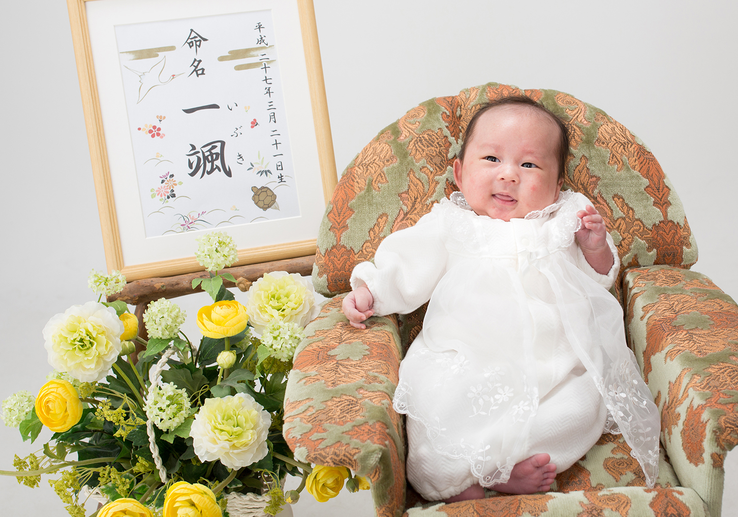 といっても、お宮参りの時に両家の親が集まるというのが多いと思いますので、1ヶ月のお宮参りの時には大家族と一人のワンポーズくらい。