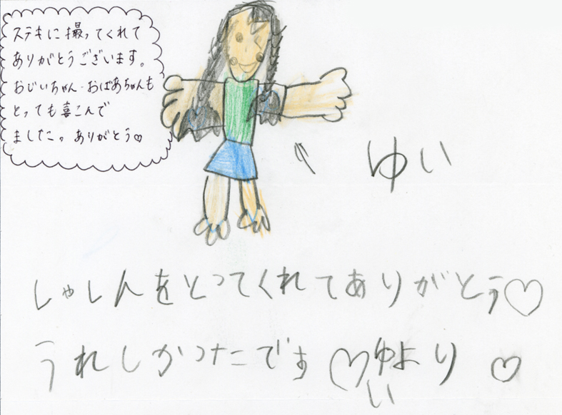 岡山市より七五三の撮影でお越しのK様のお客様の声 2015年12月25日 最終更新日時 : 2015年12月25日 kzn_rq_photo-satou 素敵に撮ってくれてありがとうございます。おじいちゃんおばあちゃんもとっても喜んでました。ありがとう! しゃしんをとってくれてありがとう。うれしかったです。 <佐藤写真館より> K様ありがとうございます! おじいちゃん、おばあちゃんにも好評でうれしいです^o^ 小学校生活楽しんでくださいね~♪ 七五三は楽しく遊びながらかわいく撮っちゃいます☆ ご予約は 086-482-0115 または yosi@photo-satou.com まで♪