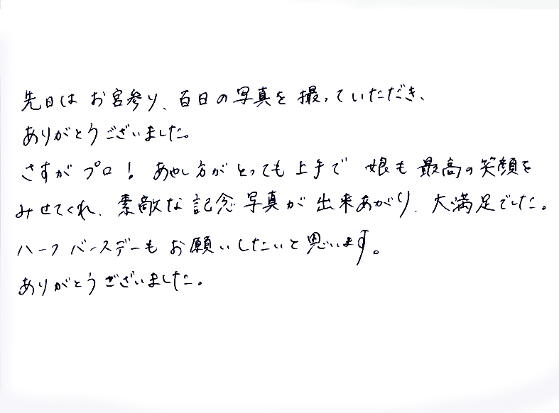 先日はお宮参り、百日の写真を撮っていただきありがとうございました。