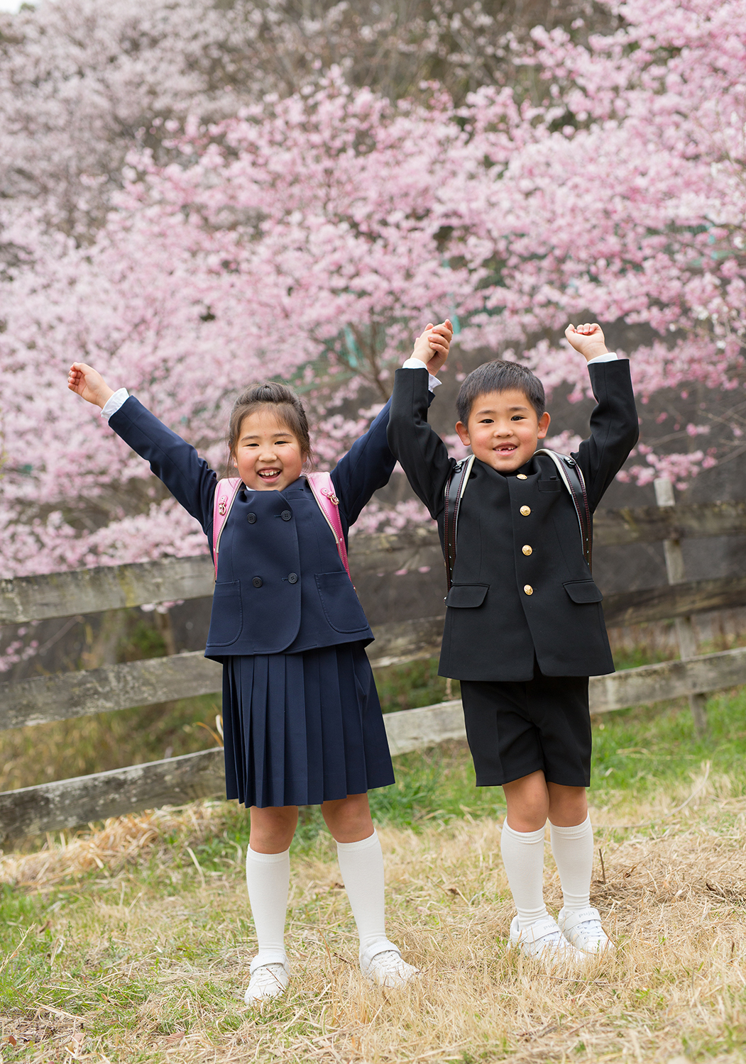 新しい制服やぴかぴかのかばん。大好きなお友達と。
