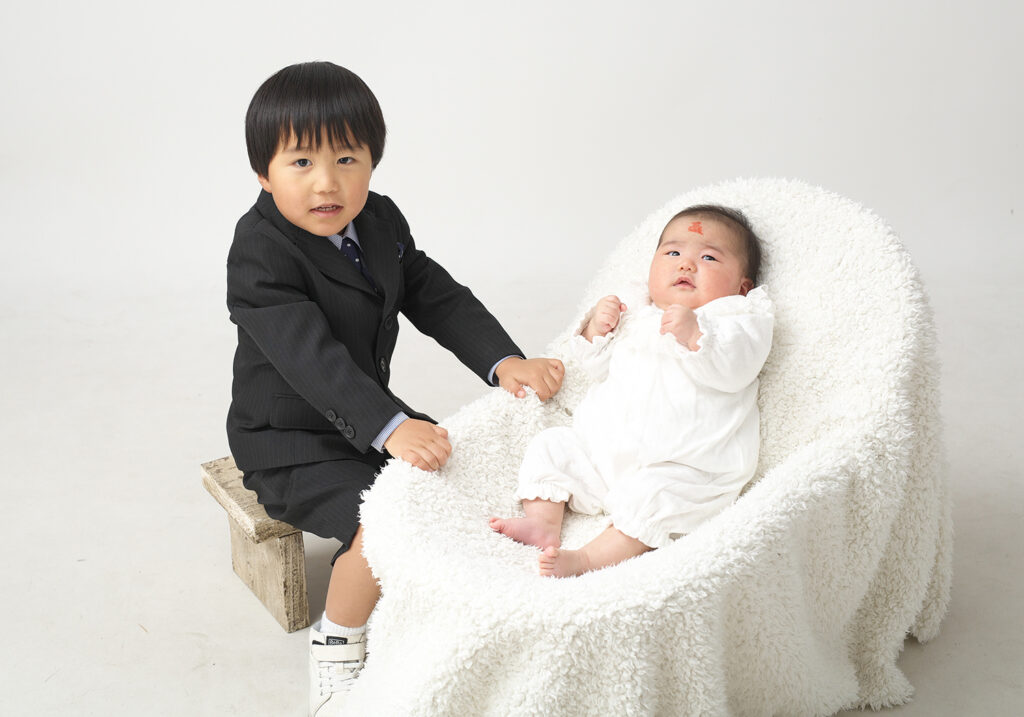 お宮参りでも家族写真、おひとりで、兄弟と…