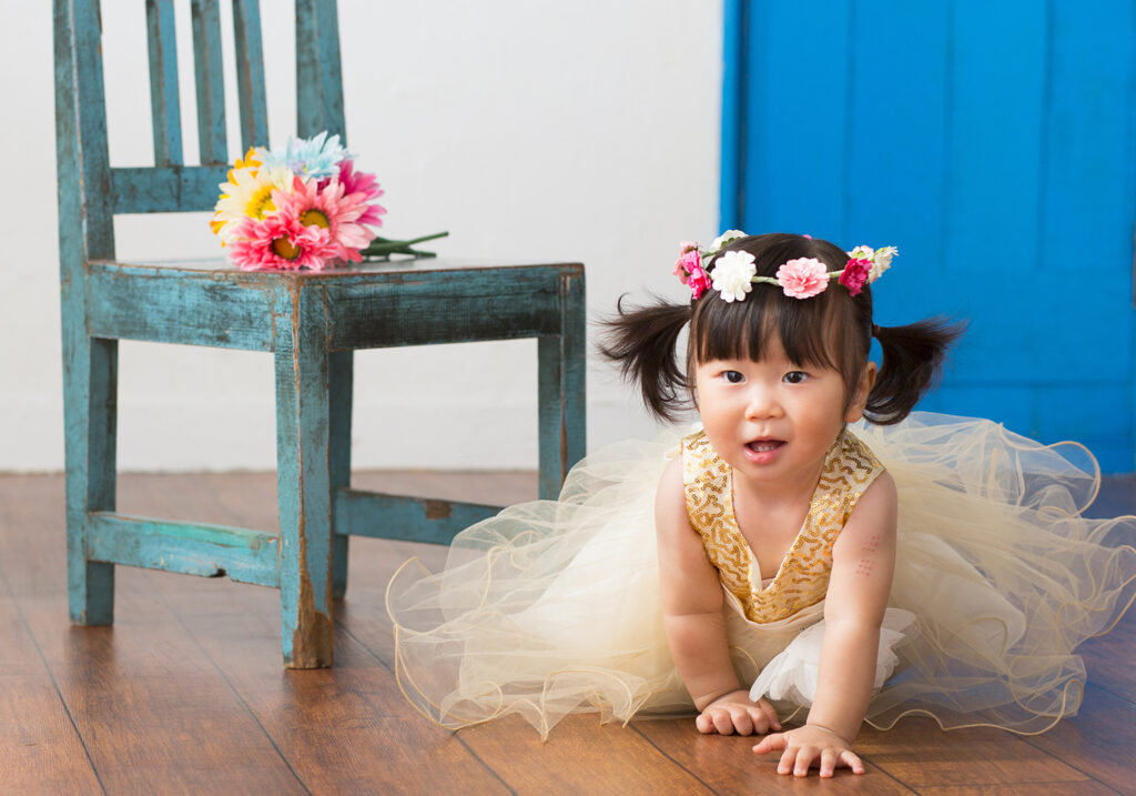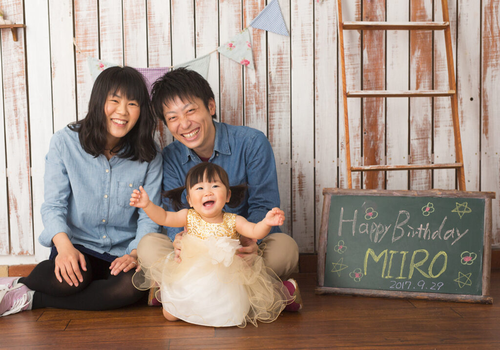 1歳のお誕生日を迎えたお子様のお祝いをお写真に♪