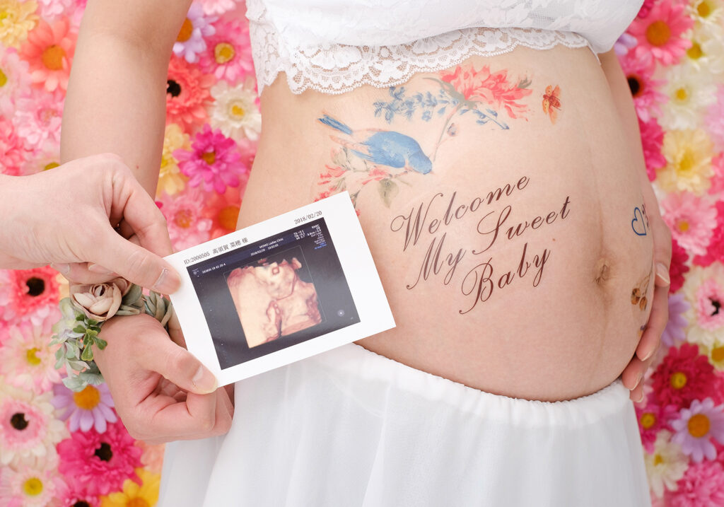 その際、妊娠線などを気にされる方も多いですが、プリントする写真にはきちんと修正を施しますのでご安心ください!!