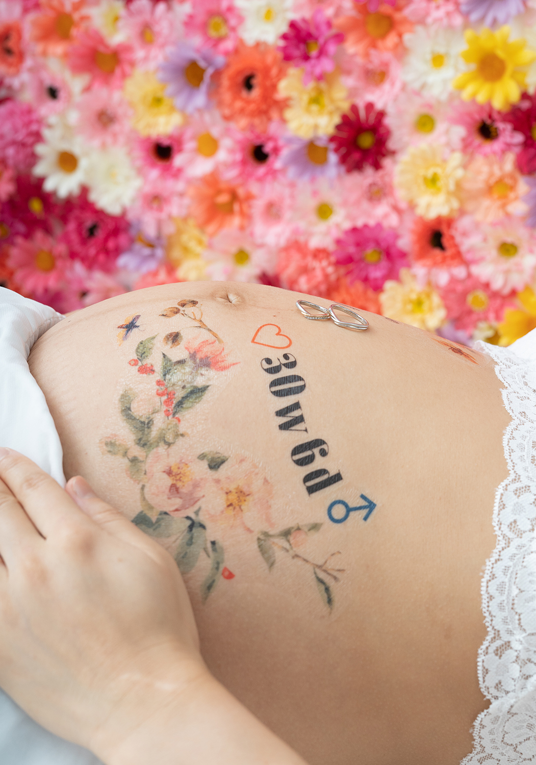 その際、妊娠線などを気にされる方も多いですが、プリントする写真にはきちんと修正を施しますのでご安心ください!!