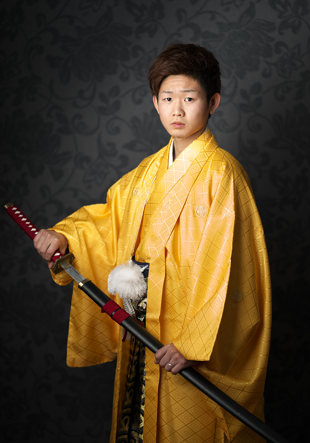 衣装合わせでは当店一押しの派手めな黄色の袴をおススメ!