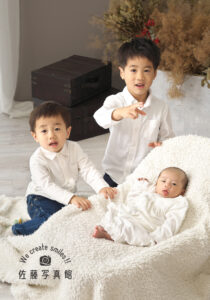 先日来てくれましたかわいい赤ちゃん☆ 一番上のお兄ちゃんが赤ちゃんの時からのお付き合いです^o^ 今回は第三子誕生ということでおめでとうございます!! 今回、生後一か月での撮影と百日参りの写真両方撮影して一冊にまとめると […]